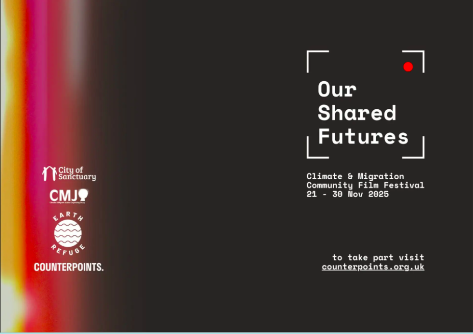 We are excited to announce the Our Shared Futures: Climate & Migration Community Film Festival 2025, curated by Counterpoints Arts in partnership with Earth Refuge, CMJ (Climate & Migrant Justice Organising Group), and City of Sanctuary.